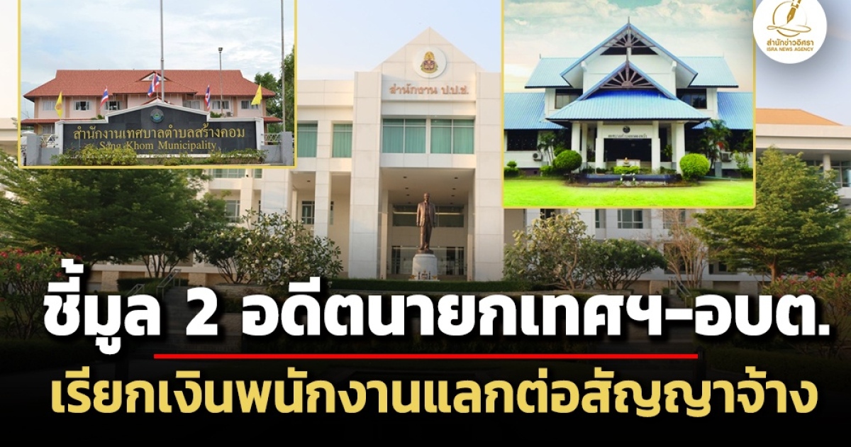 ป.ป.ช.ชี้มูลอดีตผู้บริหารท้องถิ่น 2 ตำแหน่ง รายแรกเป็นนายกเทศฯ ต.สร้างคอม เรียกเงินค่าตอบแทนสัญญาจ้างพนักงาน 14 ราย รายละ 1-2 หมื่น ส่วนอีกรายเป็นอดีตนายกฯ อบต.เรียกรับเงินต่อสัญญาจ้างพนักงาน 22 ราย ได้เงินไป 1.85 แสน