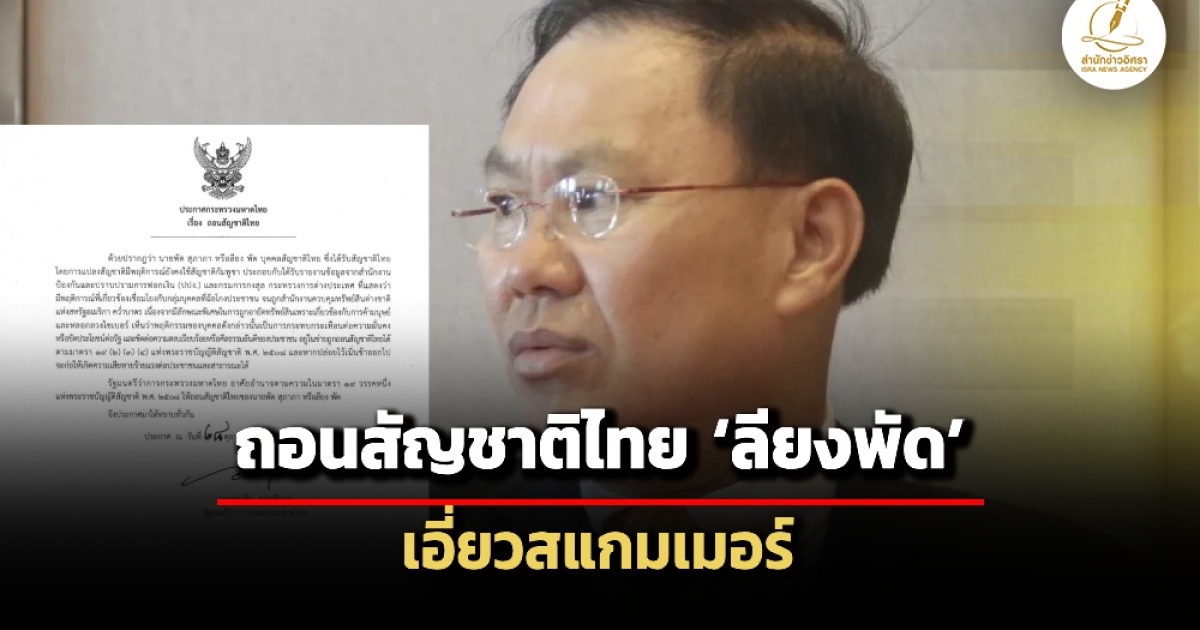 สำนักข่าวอิศรา (www.isranews.org) รายงานว่า วันที่ 24 ตุลาคม 2568 นายสิริพงศ์ อังคสกุลเกียรติ โฆษกประจำสำนักนายกรัฐมนตรี เปิดเผยว่า นายอนุทิน ชาญวีรกูล นายกรัฐมนตรีและรัฐมนตรีว่าการกระทรวงมหาดไทย ได้ลงนามในประกาศกระทรวงมหาดไทย เรื่อง ถอนสัญชาตินายพัด สุภาภา หรือลียง พัด ซึ่งบุคคลดังกล่าว ได้รับสัญชาติไทย โดยการแปลงสัญชาติ แต่ยังมีพฤติการณ์ใช้สัญชาติกัมพูชา อีกทั้งมีรายงานข้อมูลจากสำนักงาน ปปง. และกรมการกงสุล กระทรวงการต่างประเทศว่า บุคคลข้างต้น มีพฤติการณ์ที่เกี่ยวข้องเชื่อมโยงกับกลุ่มบุคคลที่ฉ้อโกงประชาชน จนถูกสำนักงานควบคุมทรัพย์สินต่างชาติแห่งสหรัฐอเมริกา ดำเนินการคว่ำบาตรแล้ว เนื่องจากมีลักษณะพิเศษในการถูกอายัดทรัพย์สินเพราะเกี่ยวข้องกับการค้ามนุษย์ หลอกลวงไซเบอร์