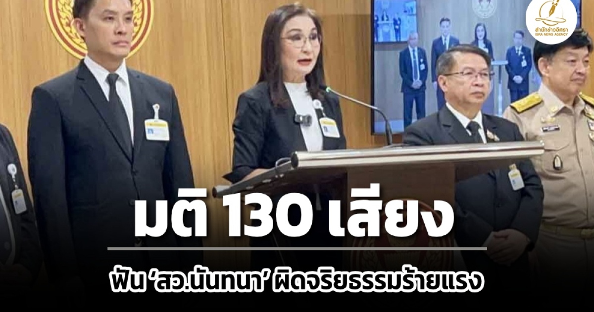 วุฒิสภามีมติ 130 ต่อ 26 เสียง ลงดาบ ‘สว.นันทนา’ ฝ่าฝืนมาตรฐานจริยธรรมอย่างร้ายแรง จากพฤติกรรมวางตนไม่เป็นกลาง-มีอคติ-ดูหมิ่นอาชีพผู้อื่น เตรียมส่งเรื่อง ป.ป.ช. ดำเนินการต่อ