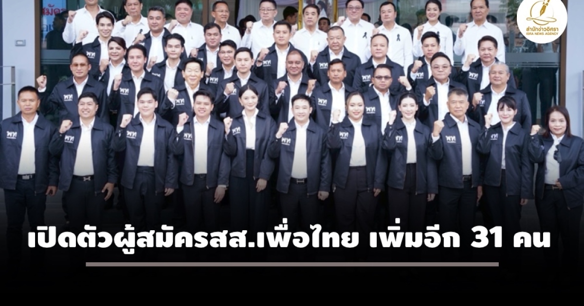 สำนักข่าวอิศรา (www.isranews.org) รายงานว่า เมื่อวันที่ 7 พฤศจิกายน 2568 เวลา 10.30 น. ที่พรรคเพื่อไทย นายจุลพันธ์ อมรวิวัฒน์ หัวหน้าพรรคเพื่อไทย นายประเสริฐ จันทรรวงทอง เลขาธิการพรรค นายสุริยะ จึงรุ่งเรืองกิจ ผู้อำนวยการการเลือกตั้งพรรคเพื่อไทย พร้อมด้วยแกนนำพรรคร่วมเปิดผู้เสนอตัวลงสมัครเลือกตั้ง สส. พรรคเพื่อไทยจาก 18 จังหวัดรวม 31 คน รวมมีผู้เสนอตัวลงสมัครรับเลือกตั้ง สส.แล้ว 265 เขตเลือกตั้ง เตรียมสู้ศึกชิงชัยในการเลือกตั้งสมาชิกสภาผู้แทนราษฎรเป็นการทั่วไปที่จะเกิดขึ้นเร็วๆ นี้