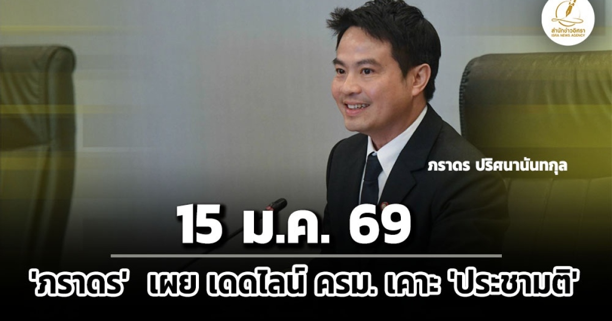 ภราดร ปริศนานันทกุล รมต.ประจำสำนักนายกฯ-ที่ปรึกษาของวิปรัฐบาล เผย เปิดสมัยประชุมวิสามัญฯ ถก ร่างรัฐธรรมนูญแก้ไขเพิ่มเติม วาระสอง-สาม ต้น ธ.ค.68 ก่อนเปิดสมัยสามัญฯ 12 ธ.ค.68 รับลูก แสวง บุญมี เลขาธิการ กกต. วาง เดดไลน์ ครม. มีมติส่งเรื่องประชามติให้ กกต. ภายใน 15 ม.ค.69 มั่นใจกระบวนการร่างรัฐธรรมนูญ-ศึกษา ข้อดี-ข้อเสีย ยกเลิก MOU 43-44 เสร็จทันตามไทม์ไลน์