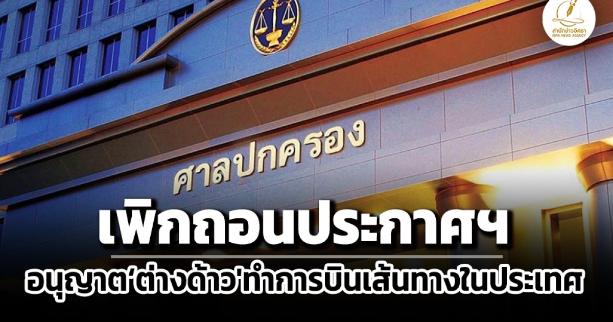 ‘ศาลปค.สูงสุด’ พิพากษาเพิกถอนประกาศ ‘ก.แรงงาน’ อนุญาต ‘คนต่างด้าว’ ทำหน้าที่ ‘นักบิน’ เครื่องเช่า ทำการบินในประเทศ ชี้เป็นการใช้ ‘ดุลพินิจ’ ออกประกาศฯ โดยไม่ชอบด้วยกม.-ออกกฎไม่รักษาประโยชน์สาธารณะ