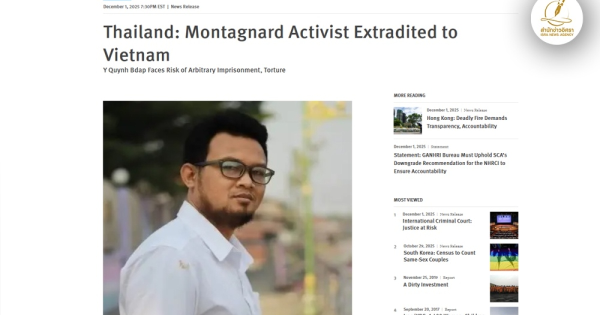 สำนักข่าวอิศรา (www.isranews.org) รายงานว่าเมื่อวันที่ 2 ธ.ค. องค์กรฮิวแมนต์ไรท์วอทช์ (Human Rights Watch )หรือ HRW ได้ออกแถลงการณ์ถึงกรณีที่เจ้าหน้าที่ไทยได้ส่งตัวนายวาย ควิญ บดาป (Y Quynh Bdap) นักกิจกรรมสิทธิมนุษยชนชาวมอนตาญาร์ (Montagnard) กลับประเทศเวียดนาม โดยบังคับให้เขากลับด้วยความเสี่ยงว่าจะถูกทรมานและถูกละเมิดสิทธิอย่างรุนแรง