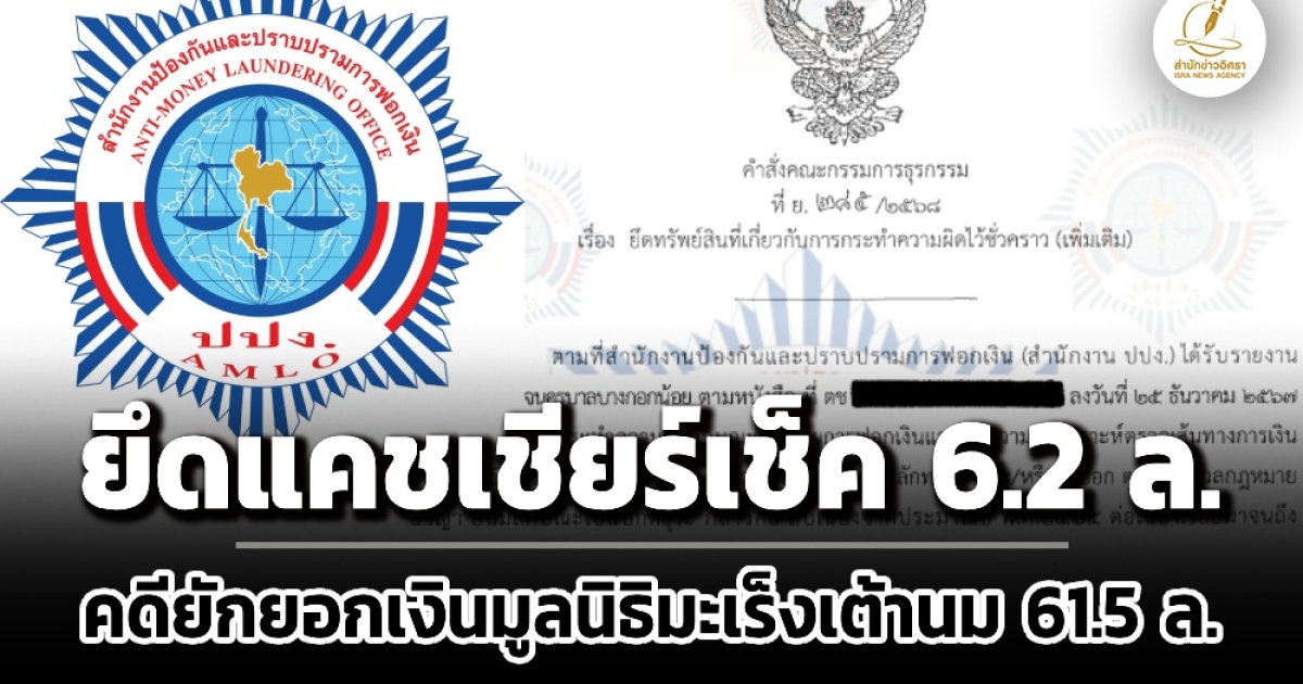 ปปง.ตามยึดทรัพย์ครั้งที่ 5 คดี ‘สุนิสา’ หน.ฝ่ายการเงิน กับพวก ทำเอกสารเบิกจ่ายเท็จโครงการต้านภัยมะเร็งเต้านม ถอนเงินมูลนิธิฯ เข้าส่วนตัว 15 ครั้ง เสียหาย 61.5 ล. ปี 2565-2567 คราวนี้ แคชเชียร์เช็ค 2 ใบ 6.2 ล. ก่อนหน้าโดน 4 ครั้ง 163 รายการ 43.5 ล้านบาท