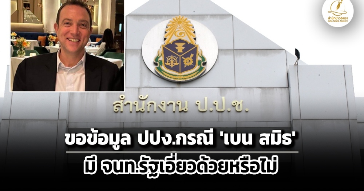 ป.ป.ช.เตรียมขอข้อมูล ปปง.โยงฟอกเงิน กรณี 'เบน สมิธ' หวังขยายผล มี จนท.รัฐเอี่ยวด้วยหรือไม่