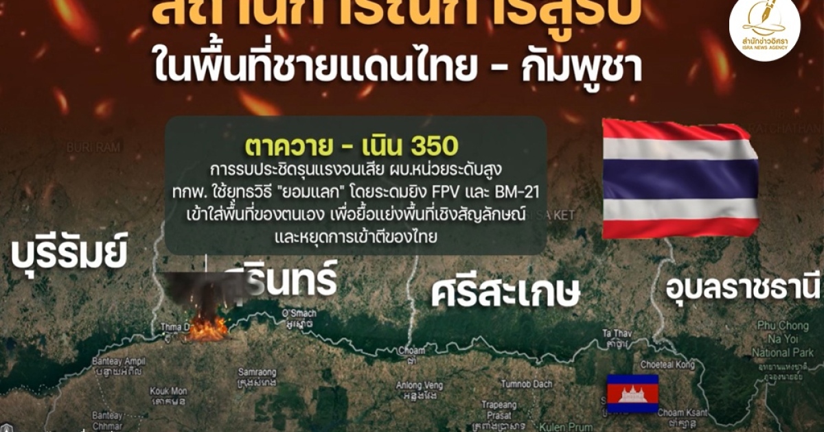 พื้นที่ตาควาย - เนิน 350: การรบประชิดรุนแรงจนเสีย ผบ.หน่วยระดับสูง ของกัมพูชา ทกพ. ใช้ยุทธวิธี "ยอมแลก" โดยระดมยิง FPV และ BM-21 เข้าใส่พื้นที่ของตนเอง เพื่อยื้อแย่งพื้นที่เชิงสัญลักษณ์และหยุดการเข้าตีของไทย