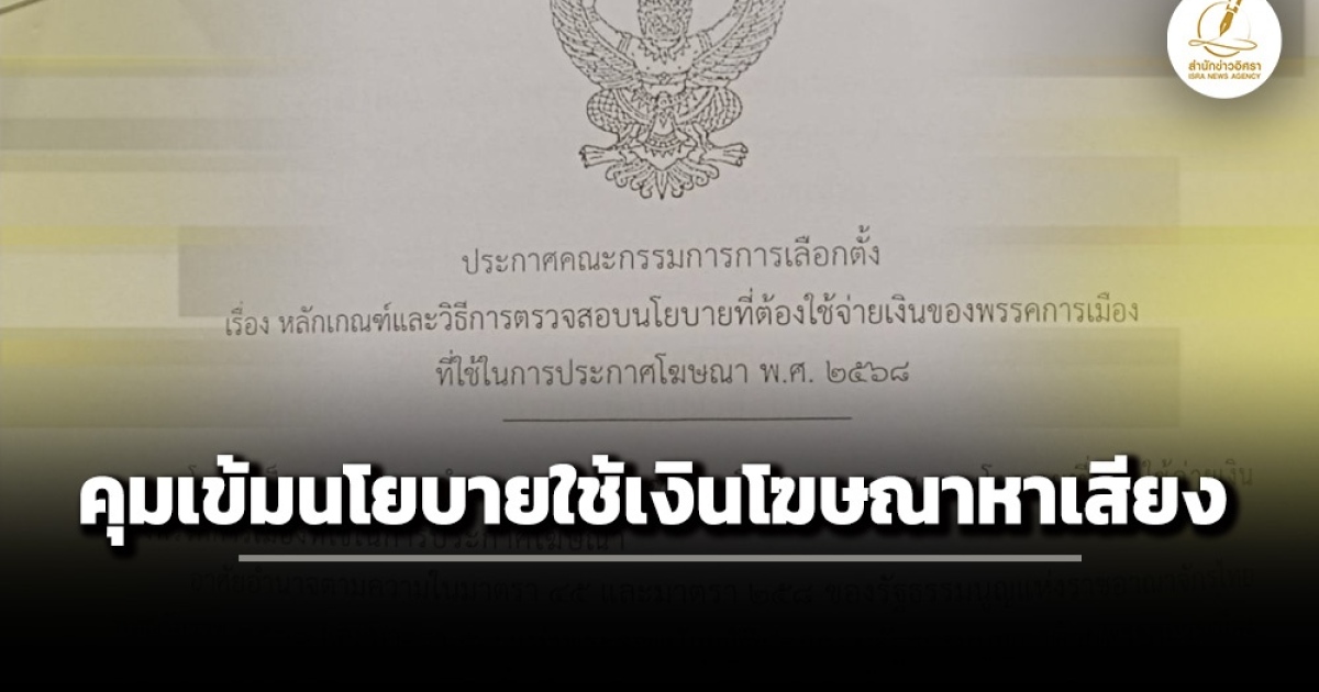 สำนักข่าวอิศรา (www.isranews.org) รายงานว่า วันที่ 17 ธันวาคม 2568 สำนักงานคณะกรรมการการเลือกตั้ง (กกต.) เผยแพร่ประกาศประกาศ กกต. เรื่อง หลักเกณฑ์และวิธีการตรวจสอบนโยบายที่ต้องใช้จ่ายเงินของพรรคการเมืองที่ใช้ในการประกาศโฆษณา พ.ศ. 2568 ลงนามโดยนายณรงค์ กลั่นวารินทร์ ประธานกกต. โดยกำหนดให้การจัดทำนโยบายของพรรคการเมืองที่ต้องใช้เงินต้องรายงานต่อ กกต. ก่อนวันเลือกตั้งไม่น้อยกว่า 20 วัน ซึ่งกกต.อาจจะตั้งคณะกรรมการตรวจสอบ เพื่อตรวจสอบนโยบายของพรรคการเมือง รวมถึงการเรียกเอกสารมาชี้แจง และมีอำนาจสั่งให้พรรคการเมืองนั้นดำเนินการให้ถูกต้องได้ โดยมีรายละเอียดของประกาศ ดังนี้