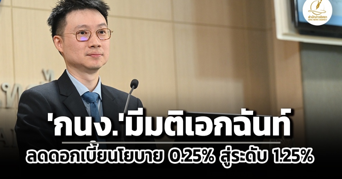‘ภาษีสหรัฐฯ’ซ้ำเติม-เงินเฟ้อต่ำ! กนง.มีมติเอกฉันท์ลดดอกเบี้ยนโยบาย 0.25% สู่ระดับ 1.5%