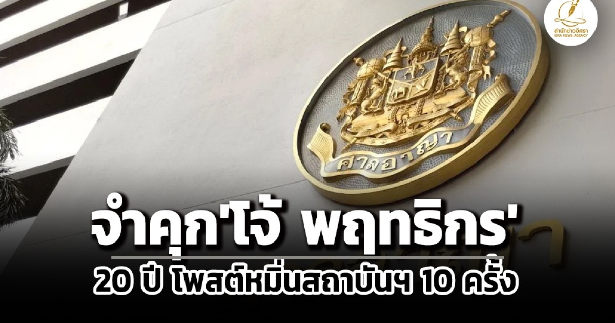 ‘ศาลอาญา’ พิพากษาจำคุก ‘โจ้ พฤทธิกร’ อดีตทีมงานก้าวหน้า 20 ปี โพสต์ข้อความดูหมิ่นสถาบันฯรวม 10 ครั้ง ขณะที่เจ้าตัวหลบหนี ก่อนพิพากษาลับหลัง-ออกหมายจับ