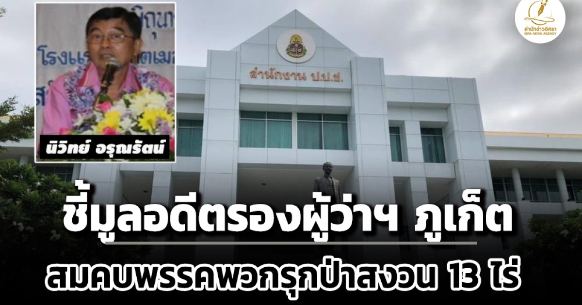 สำนักข่าวอิศรา (www.isranews.org) รายงานว่าเมื่อวันที่ 25 ธ.ค. สำนักงานคณะกรรมการป้องกันและปราบปรามการทุจริตแห่งชาติ (ป.ป.ช.) ได้ออกเอกสารข่าวแจกกรณี นายสุรพงษ์ อินทรถาวร รองเลขาธิการคณะกรรมการ ป.ป.ช. รักษาราชการแทนเลขาธิการคณะกรรมการ ป.ป.ช. ในฐานะโฆษกสำนักงาน ป.ป.ช. แถลงว่า คณะกรรมการ ป.ป.ช. มีมติชี้มูลความผิดนายนิวิทย์ หรือปภินวิช อรุณรัตน์ อดีตรองผู้ว่าราชการจังหวัดภูเก็ต และนายไพฑูรย์ เลิศไกร อดีตเจ้าพนักงานที่ดินจังหวัดภูเก็ต กับพวก ออกโฉนดที่ดินเลขที่ 13896 และโฉนดที่ดินเลขที่ 13897 ตำบลป่าตอง อำเภอกะทู้ จังหวัดภูเก็ต เนื้อที่รวม 13 – 3 - 2.3 ไร่ ในเขตป่าสงวนแห่งชาติ ป่าเทือกเขากมลา และเป็นพื้นที่เขา ที่ภูเขา ที่มีความลาดชันเกิน 35 เปอร์เซ็นต์ โดยมิชอบด้วยกฎหมาย และชี้มูลนางสาวจันจิรา วีระกิจ นายสนิท วรกิจ และนางสาวสุนิสรา วัฒนเสน ในฐานะผู้สนับสนุนเจ้าหน้าที่ทำความผิด