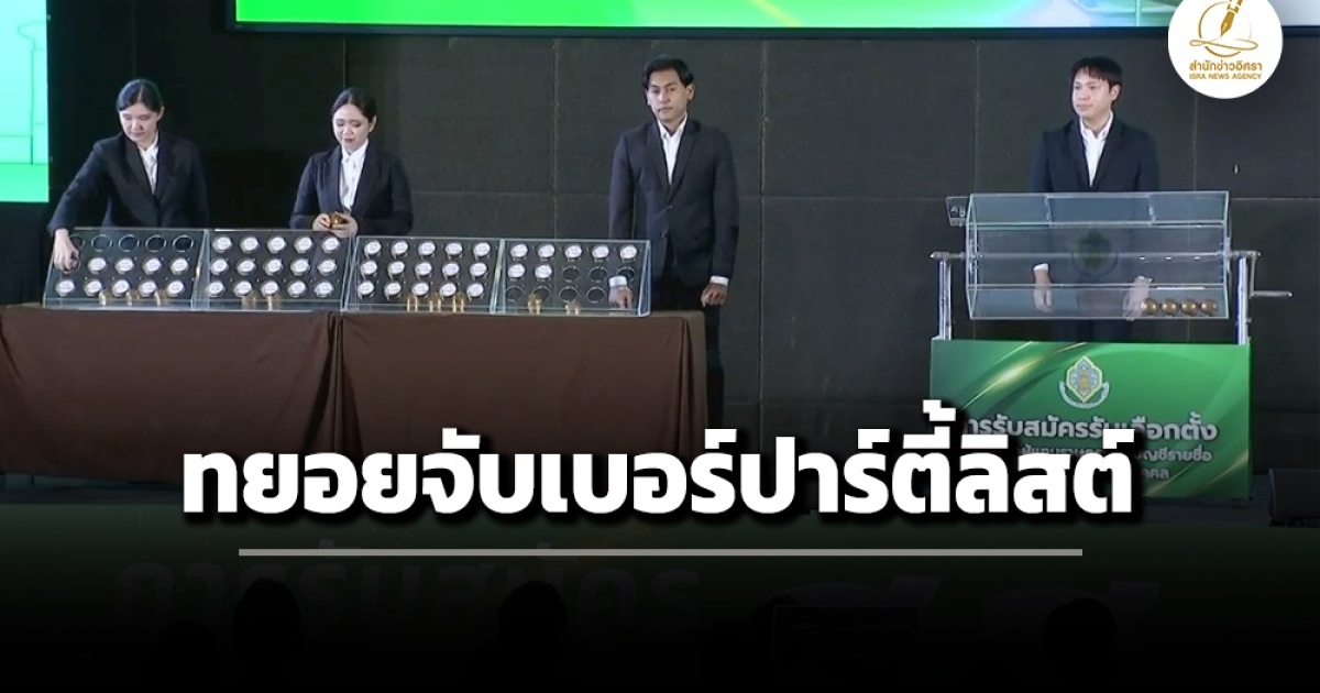 แกนนำพรรคการเมืองทยอยยื่นจับสลากหมายเลขพรรค เลือกตั้งปี 69 ล่าสุด ‘ณัฐพงษ์’ แคนดิเดตจาก ปชน.จับสลากพรรค ปชน.ได้เบอร์ปาร์ตี้ลิสต์หมายเลข 46 -‘จุลพันธ์’ แคนดิเดตนายกฯ เพื่อไทย จับได้หมายเลข 9-‘อถิสิทธิ์’ จับให้ ปชป.ได้หมายเลข 27- ‘นฤมล’ ตัวแทนจากพรรคกล้าธรรมจับเบอร์ปาร์ตี้ลิสต์ได้หมายเลข 42-'อนุทิน' จับให้พรรคภูมิใจไทยได้หมายเลข 37