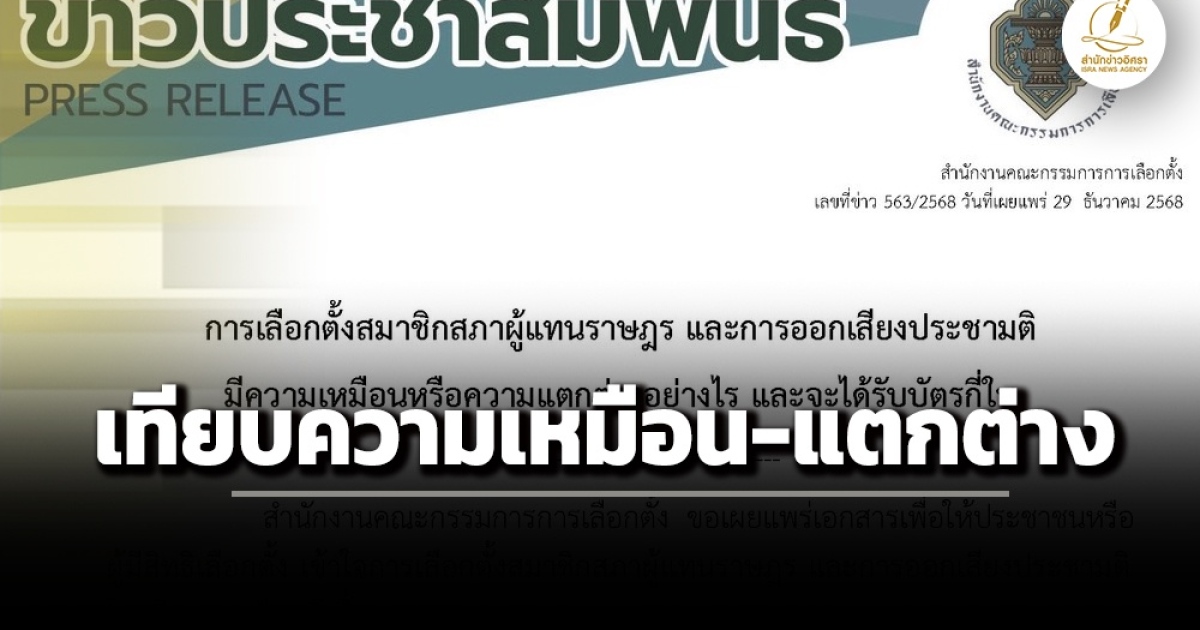 สำนักงาน กกต. เผยแพร่ตารางเทียบความเหมือน-ความแตกต่าง การเลือกตั้ง สส.-การออกเสียงประชามติ เลือกตั้งล่วงหน้า พร้อม-ไม่พร้อมประชามติได้บัตรกี่ใบ