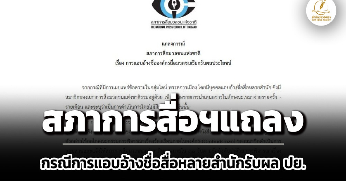 เมื่อวันที่ 9 มกราคม 2569 สภาการสื่อมวลชนแห่งชาติ ออกแถลงการณ์ เรื่อง การแอบอ้างชื่อองค์กรสื่อมวลชนเรียกรับผลประโยชน์ ระบุว่า
