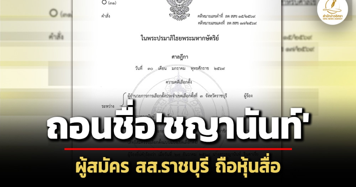 • ศาลฎีกาสั่งถอนชื่อ 'ชญานันท์' ผู้สมัคร สส.ราชบุรี พรรคเพื่อไทย ถือหุ้นสื่อ-บมจ.อาร์เอส