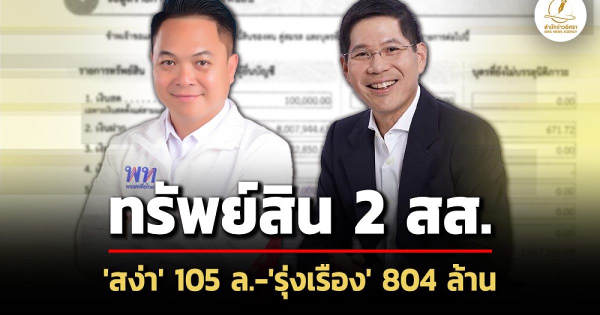 ป.ป.ช.เปิดบัญชีทรัพย์สิน 2 สส.เพื่อไทย กรณีเข้ารับตำแหน่ง ‘สง่า’ 105 ล. ที่ดิน 38 แปลง-รถพ่วง 4 คัน - ‘รุ่งเรือง’ 804 ล. ซื้อที่ดินลอนดอน 202 ล.-สะสมโอ่งใบละ 7 ล.