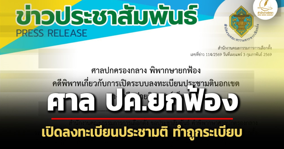 สำนักข่าวอิศรา (www.isranews.org) รายงานว่า เมื่อวันที่ 3 ก.พ. ศาลปกครองกลางได้อ่านคําพิพากษา คดีหมายเลขดำที่ 122/2569 หมายเลขแดงที่ 165/2569 ระหว่างนางสาว อ. (ผู้ฟ้องคดี) กับคณะกรรมการการเลือกตั้ง (กกต.) ที่ 1 และสำนักงานคณะกรรมการการเลือกตั้ง (สำนักงาน กกต.) ที่ 2 (ผู้ถูกฟ้องคดี) คดีพิพาทเกี่ยวกับการที่หน่วยงานทางปกครองหรือเจ้าหน้าที่ของรัฐ กระทำการโดยไม่ชอบด้วยกฎหมาย มีสาระสำคัญว่า
