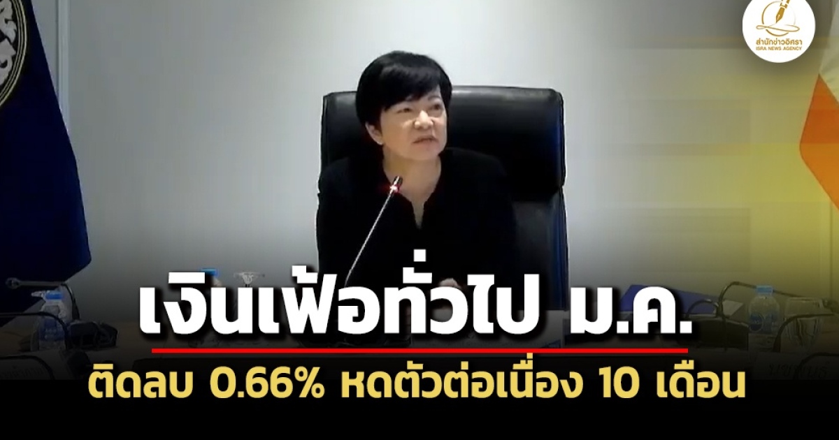 ‘พาณิชย์’ เผยอัตราเงินเฟ้อทั่วไป ม.ค.69 ลดลง 0.66% หดตัวต่อเนื่อง 10 เดือน หลัง ‘ค่าไฟฟ้า-ราคาน้ำมัน’ ลดลง ตามสถานการณ์พลังงานโลก-มาตรการลดค่าครองชีพภาครัฐ ขณะที่ Core CPI ยังบวก 0.6%