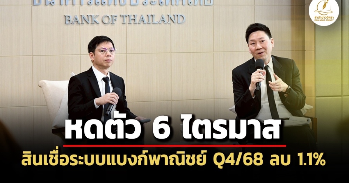 ‘ธปท.’ เผยไตรมาส 4/68 สินเชื่อ ‘ระบบธนาคารพาณิชย์’ ติดลบ 1.1% หดตัวต่อเนื่อง 6 ไตรมาส ขณะที่สินเชื่อ SMEs หด 4.1% หดตัวต่อเนื่อง 14 ไตรมาส ด้าน NPL ลดเหลือ 2.84%