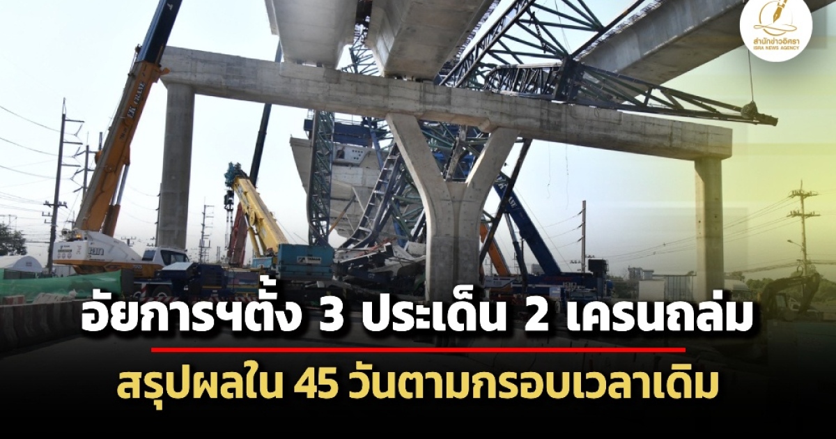 คกก.สอบสวนข้อเท็จจริงเหตุเครนถล่ม 2 เหตุการณ์ยังไม่คืบ อัยการฯตั้งคำถาม 3-4 ประเด็น เตรียมประชุมอีกครั้ง 25 ก.พ.นี้ เพื่อทราบความคืบหน้า ชี้การสรุปผลสอบอยู่ในกรอบ 45 วัน