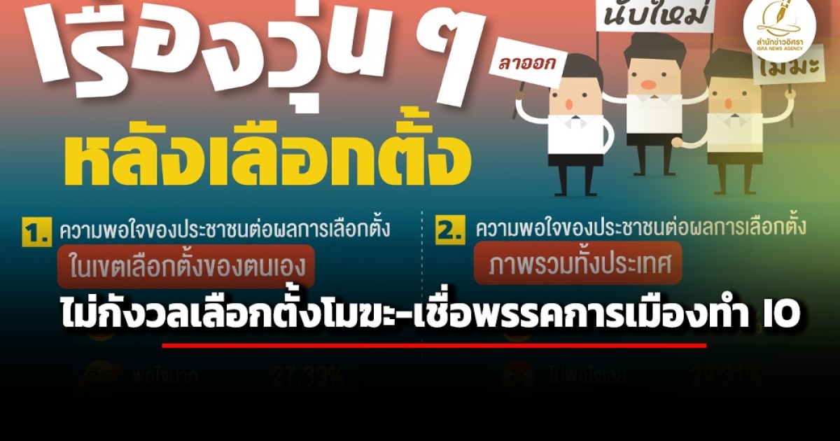 สำนักข่าวอิศรา (www.isranews.org) รายงานว่า วันที่ 22 กุมภาพันธ์ 2569 ศูนย์สำรวจความคิดเห็น หรือ นิด้าโพล สถาบันบัณฑิตพัฒนบริหารศาสตร์ (นิด้า) เปิดเผยผลการสำรวจ เรื่อง เรื่องวุ่น ๆ หลังเลือกตั้ง ทำการสำรวจระหว่างวันที่ 17-18 กุมภาพันธ์ 2569 จากประชาชนที่มีอายุ 18 ปีขึ้นไป กระจายทุกภูมิภาค ระดับการศึกษา อาชีพ และรายได้ ทั่วประเทศ รวมจำนวนทั้งสิ้น 1,310 หน่วยตัวอย่าง เกี่ยวกับความพอใจของประชาชนต่อผลการเลือกตั้งที่ผ่านมา การสำรวจอาศัยการสุ่มตัวอย่างโดยใช้ความน่าจะเป็นจากบัญชีรายชื่อฐานข้อมูลตัวอย่างหลัก (Master Sample) ของ นิด้าโพล สุ่มตัวอย่างแบบหลายขั้นตอน (Multi-stage Sampling) เก็บข้อมูลด้วยวิธีการสัมภาษณ์ทางโทรศัพท์ โดยกำหนดค่าความคลาดเคลื่อนไม่เกิน 0.05 ที่ระดับความเชื่อมั่น ร้อยละ 97.0