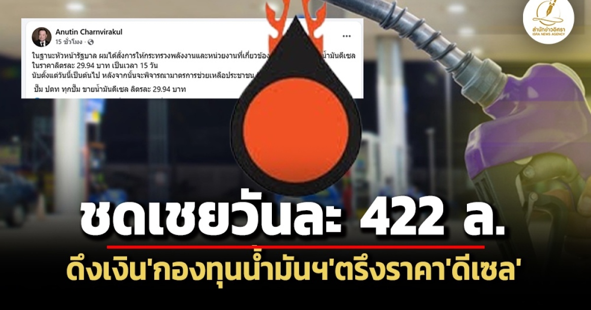 จากกรณีที่เมื่อวันที่ 3 มี.ค.ที่ผ่านมา นายอนุทิน ชาญวีรกูล นายกรัฐมนตรี และรมว.มหาดไทย โพสต์ข้อความบนเพจเฟซบุ๊กส่วนตัว Anutin Charnvirakul ว่า ได้สั่งการให้กระทรวงพลังงานและหน่วยงานที่เกี่ยวข้องตรึงราคาขายน้ำมันดีเซลในราคาลิตรละ 29.94 บาท เป็นเวลา 15 วัน นับตั้งแต่วันนี้ (3 มี.ค.) หลังจากเกิดสงครามระหว่างอิสราเอลและสหรัฐ-อิหร่าน ส่งผลให้อิหร่านประกาศปิดช่องแคบฮอร์มุซ และทำให้ราคาน้ำมันในตลาดโลกปรับตัวสูงขึ้นมาก