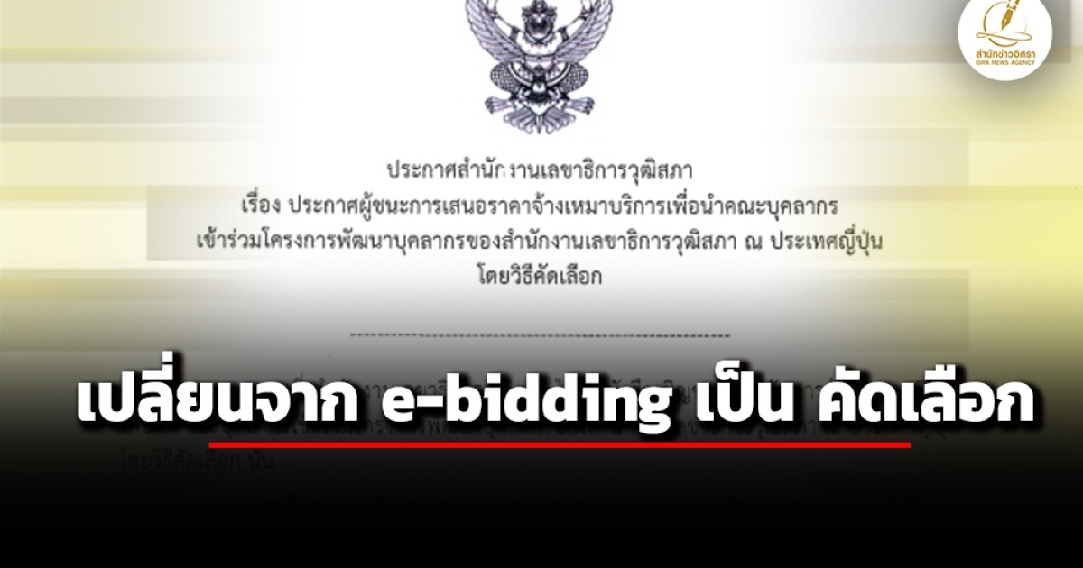 • เปลี่ยน e-bidding เป็น 'วิธีคัดเลือก' ! สำนักงานเลขาฯวุฒิ ประกาศบริษัทผู้ชนะพาดูงานญี่ปุ่น