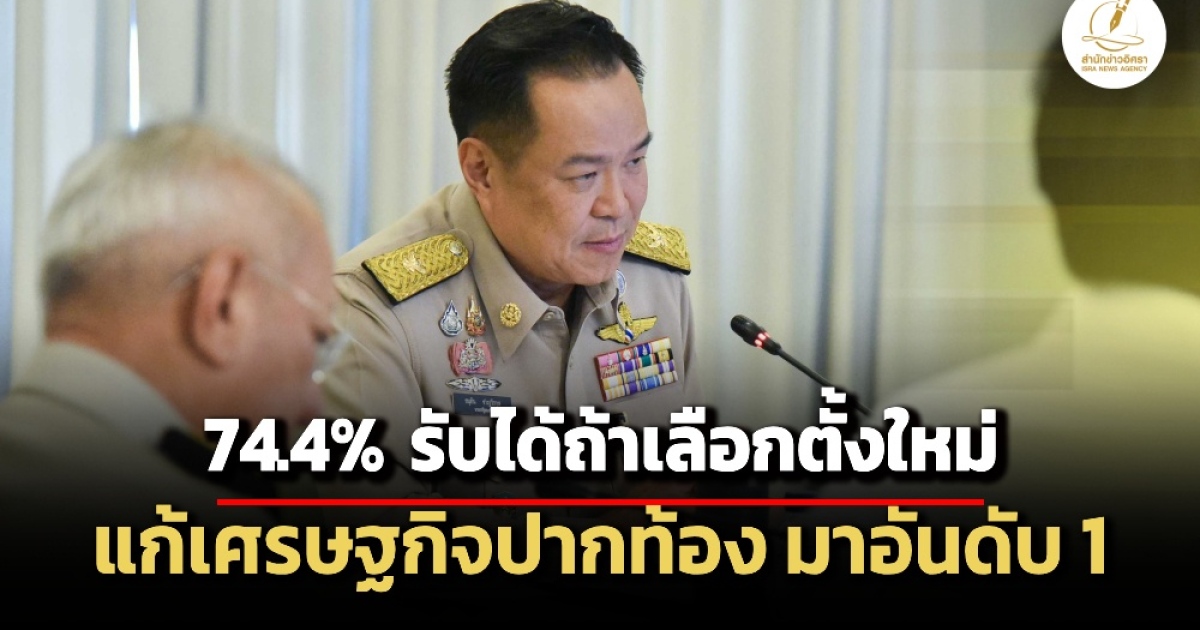 สำนักข่าวอิศรา (www.isranews.org) รายงานว่า วันที่ 13 มีนาคม 2569 สถาบันพระปกเกล้า (KPI) เปิดเผยผลสำรวจเรื่อง ทัศนะประชาชนต่อสถานการณ์การเมืองและภารกิจเร่งด่วนของรัฐบาลใหม่ ครั้งที่ 12 จากการสำรวจประชาชนอายุ 18 ปีขึ้นไปทั่วประเทศ จำนวน 1,908 ตัวอย่าง ระหว่างวันที่ 27 ก.พ.- 2 มี.ค. 2569 พบว่า ประชาชนส่วนใหญ่ 74.4% ยอมรับได้หากเกิดเหตุจำเป็นทางการเมืองจนต้องมีการเลือกตั้งใหม่ แม้อาจทำให้การจัดตั้งรัฐบาลล่าช้าออกไปอีก 4-5 เดือน ขณะที่ 25.6% ระบุว่าไม่ยอมรับหากต้องกลับไปเลือกตั้งใหม่