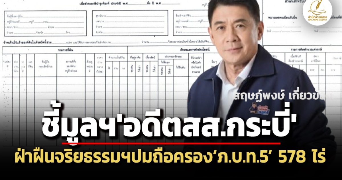 ‘ป.ป.ช.’ มีมติชี้มูลความผิด ‘สฤษฏ์พงษ์ เกี่ยวข้อง’ อดีต สส.กระบี่ ฝ่าฝืนจริยธรรมอย่างร้ายแรง ปมถือครอง ‘ภ.บ.ท.5’ 578 ไร่ โดยไม่มีคุณสมบัติที่จะครอบครองได้ตามกฎหมาย