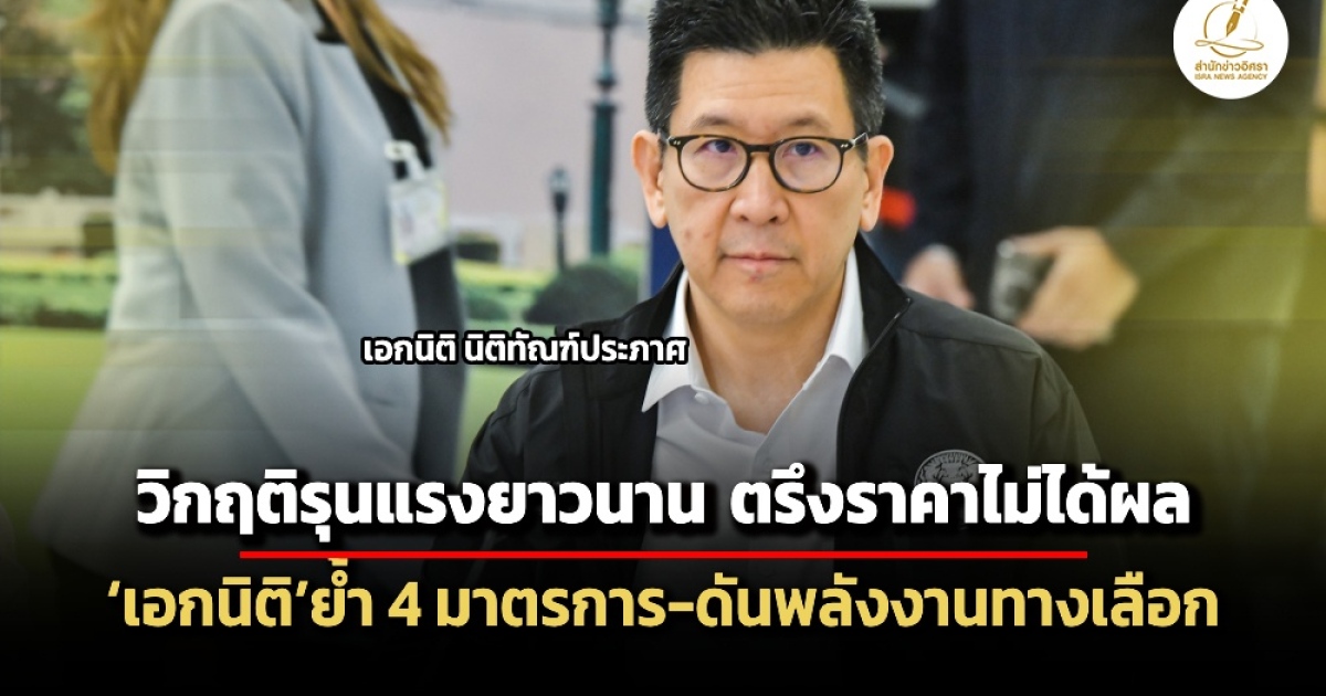 สำนักข่าวอิศรา (www.isranews.org) รายงานว่า วันที่ 24 มีนาคม 2569 นายเอกนิติ นิติทัณฑ์ประภาศ รองนายกรัฐมนตรีและรัฐมนตรีว่าการกระทรวงการคลัง เปิดเผยว่า สงครามในตะวันออกกลางทำให้เกิดวิกฤตน้ำมันที่หนักและคาดเดาไม่ได้ สถานการณ์ยืดเยื้อและรุนแรงกว่าที่คิด เป็นวิกฤตซ้ำซ้อนทั้งน้ำมัน ก๊าซธรรมชาติ และวัตถุดิบอื่นๆ ซึ่งส่งผลกระทบไปทั่วโลก