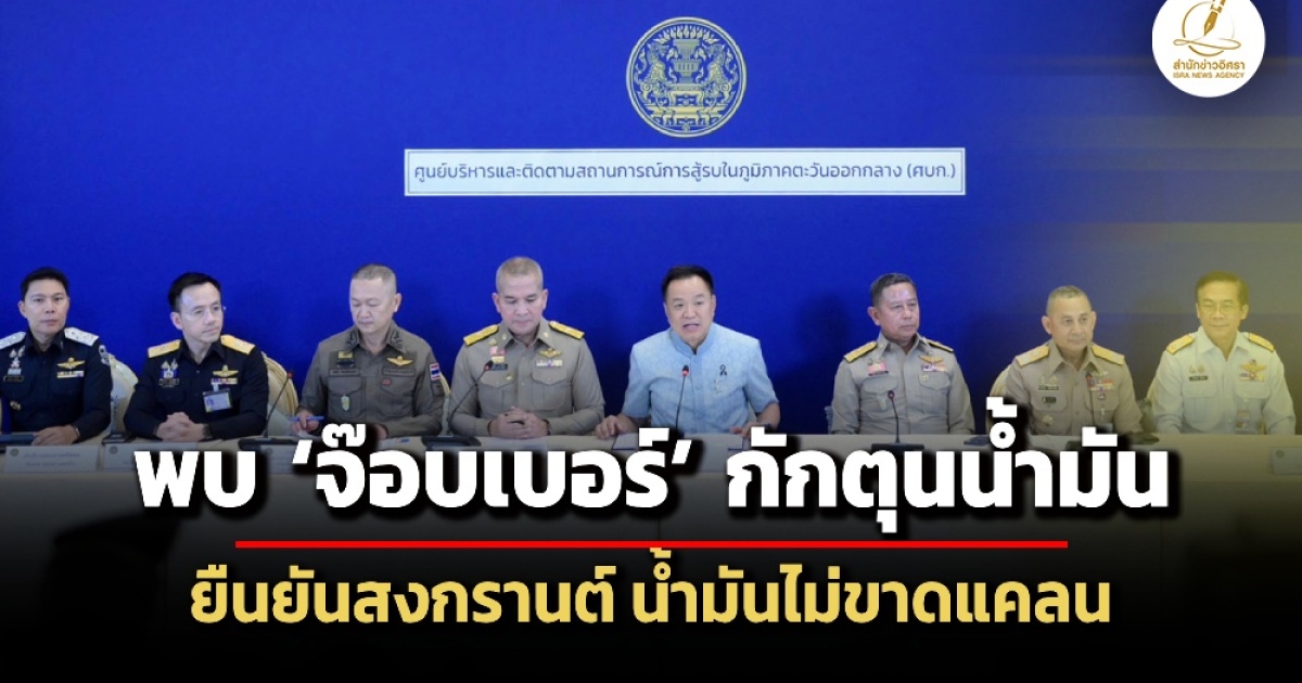 ‘อนุทิน’นำทีมแถลงศบก. พบพฤติกรรม ‘จ๊อบเบอร์’ กักตุนน้ำมันจริง แถมพบปริมาณต้องการใข้น้ำมันเพิ่มสูงกว่าปกติจาก 67ล้านลิตรเป็น 90 ล้านลิตร/วัน ระบุหน่วยงานด้านความมั่นคงลลงไปตรวจสอบแล้ว ก่อนการันตี สงกรานต์นี้ น้ำมันไม่ขาด