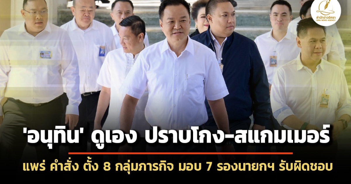 'อนุทิน' ลงนามคำสั่งสำนักนายกฯ แบ่ง 8 กลุ่มภารกิจ มอบหมาย 7 รองนายกฯ เป็นหัวหน้าผู้รับผิดชอบ - 'นายกฯ' ดูเอง 'ปราบปรามการทุจริต-ยาเสพติด-สแกมเมอร์-อาชญาการข้ามชาติ