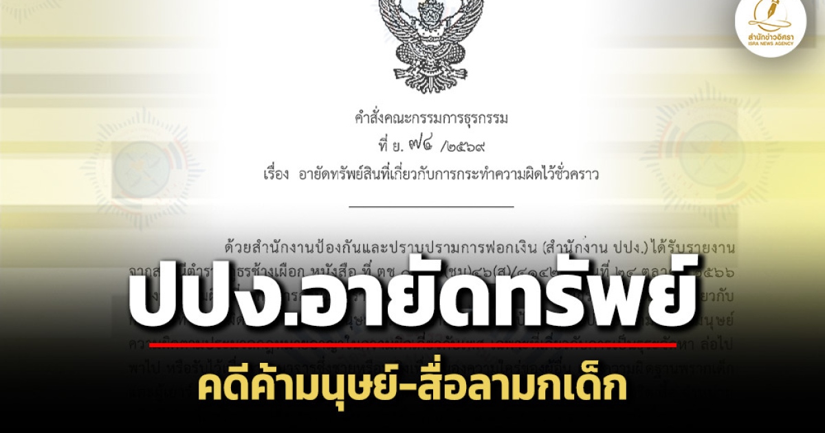 สำนักข่าวอิศรา (www.isranews.org) รายงานว่าสำนักงานป้องกันและปราบปรามการฟอกเงิน (ปปง.) มีคำสั่งคณะกรรมการธุรกรรม ที่ ย. 74/2569 เรื่อง อายัดทรัพย์สินที่เกี่ยวกับการกระทำความผิดไว้ชั่วคราว รายนายวรัญญู กับพวก ลงวันที่ 20 มีนาคม 2569 ซึ่งเป็นกรณีมีพฤติการณ์แห่งการกระทำความผิดเกี่ยวกับการค้ามนุษย์ตามกฎหมายว่าด้วยการป้องกันและปราบปรามการค้ามนุษย์ ความผิดเกี่ยวกับเพศตามประมวลกฎหมายอาญา และความผิดตามกฎหมายว่าด้วยการกระทำความผิดเกี่ยวกับคอมพิวเตอร์ โดยเป็นการอายัดทรัพย์สินจำนวน 1 รายการ พร้อมดอกผล มูลค่า 157,210.71 บาท