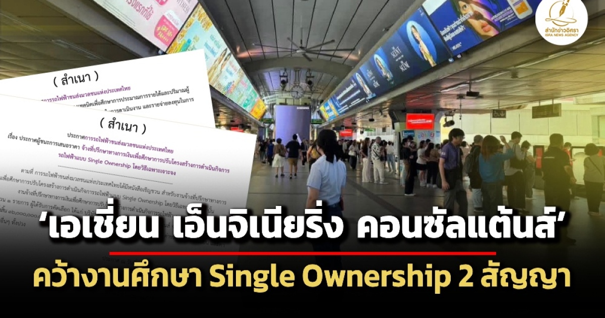 บ.ที่ปรึกษา ‘เอเชี่ยน เอ็นจิเนียริ่งฯ’ คว้างานที่ปรึกษาโปรเจ็กต์ Single Ownership รวบรถไฟฟ้ากทม.-ปริมณฑลมาอยู่ใต้ รฟม. 2 งานรวมมูลค่า 84.2 ล้านบาท