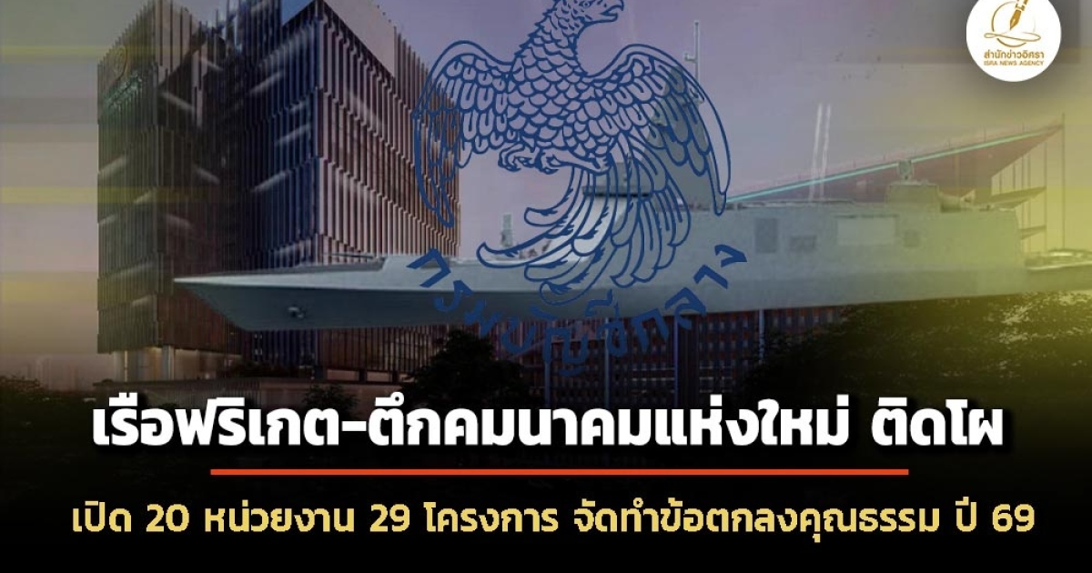 กรมบัญชีกลาง เผยแพร่ ประกาศโครงการจัดทำข้อตกลงคุณธรรม (Integrity Pact) ประจำปี 2569 จำนวน 20 หน่วยงาน 29 โครงการ เรือฟริเกต 1.7 หมื่นล้าน – อาคารคมนาคมแห่งใหม่ 3,448 ล้าน- รถโบกี้บรรทุกตู้สินค้า 946 คัน 2,459 ล้านบาท เข้าร่วม