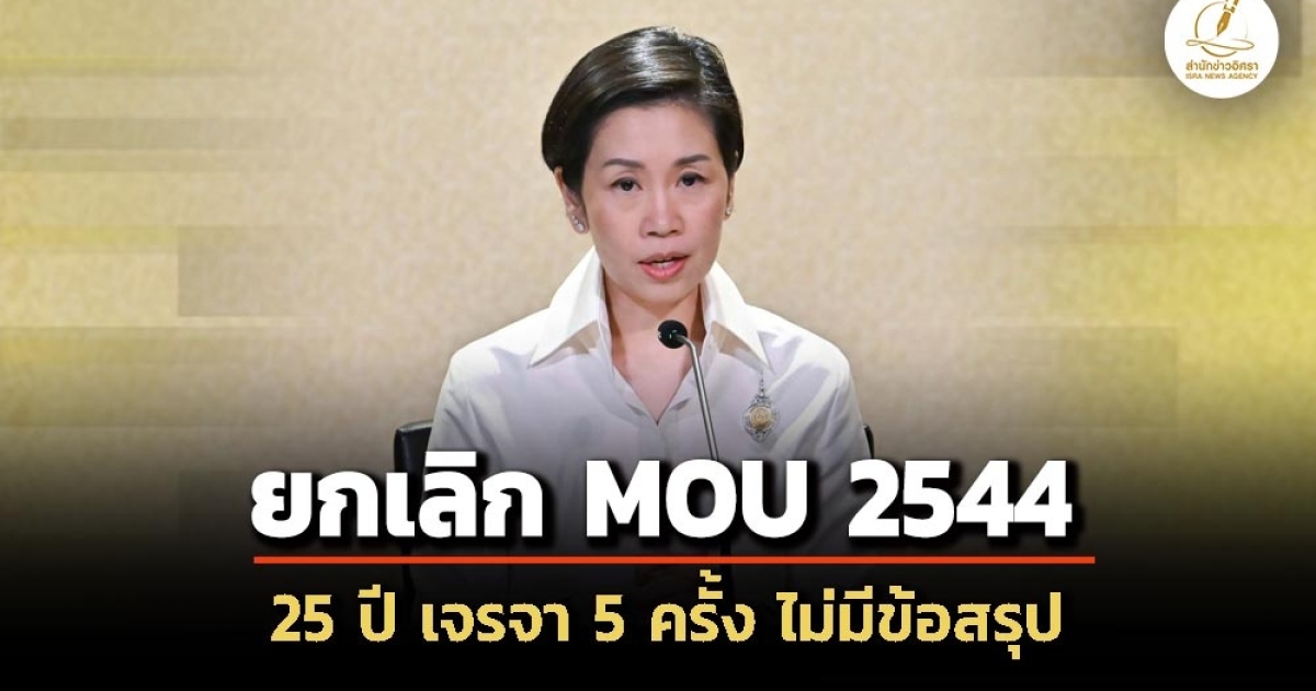 สำนักข่าวอิศรา (www.isranews.org) รายงานว่า วันที่ 23 เมษายน 2569 ที่ทำเนียบรัฐบาล น.ส.รัชดา ธนาดิเรก โฆษกประจำสำนักนายกรัฐมนตรี เปิดเผยว่า ที่ประชุมสภาความมั่นคงแห่งชาติครั้งที่ 2/ 2569 ที่มีนายอนุทิน ชาญวีรกูล นายกรัฐมนตรีและรมว.มหาดไทยเป็นประธาน ได้มีมติ ยกเลิกบันทึกความเข้าใจระหว่างรัฐบาลแห่งราชอาณาจักรไทยกับรัฐบาลแห่งราชอาณาจักรกัมพูชาว่าด้วยพื้นที่ที่ไทยและกัมพูชาอ้างสิทธิในไหล่ทวีปทับซ้อนกัน ค.ศ.2001 หรือ MOU44 ตามนโยบายรัฐบาลด้วยเหตุผล