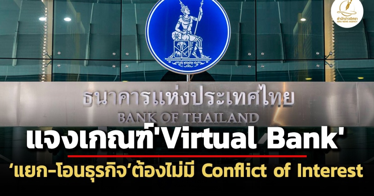 ‘ธปท.’ แจงหลักเกณฑ์จัดตั้ง ‘ธนาคารพาณิชย์ไร้สาขา’ ชี้หากมีการ ‘แยก-โอนธุรกิจ’ ต้องไม่มี ‘Conflict of Interest’