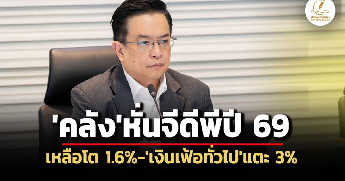 ‘คลัง’ ปรับลดคาดการณ์จีดีพีปี 69 เหลือ 1.6% จากเดิม 2% จากแรงเสียดทานความขัดแย้งใน ‘ตะวันออกกลาง’ ขณะที่ ‘เงินเฟ้อทั่วไป’ จ่อแตะ 3% หลังประเมินราคา ‘น้ำมันดิบดูไบ’ เฉลี่ยทั้งปีอยู่ที่ 91 ดอลลาร์สหรัฐ/บาร์เรล