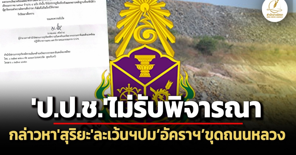 สำนักข่าวอิศรา (www.isranews.org) รายงานว่า เมื่อเร็วๆนี้ สำนักงานคณะกรรมการป้องกันและปราบปรามการทุจริตแห่งชาติ (สำนักงาน ป.ป.ช.) ได้ทำหนังสือ (ลับ) ที่ ปช. 0030/0368 แจ้งผลการพิจารณาของคณะกรรมการ ป.ป.ช. ลงวันที่ 22 เม.ย.2569 ถึง น.ส.อารมย์ คำจริง แกนนำกลุ่มประชาสังคมปฏิรูปทรัพยากรและทองคำ ซึ่งยื่นคำร้องถึง ป.ป.ช. กล่าวหา นายสุริยะ จึงรุ่งเรืองกิจ ขณะดำรงตำแหน่ง รมว.อุตสาหกรรม กับพวก ละเว้นการปฏิบัติหน้าที่ฯ