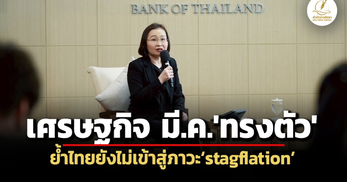 ‘แบงก์ชาติ’ เผยเครื่องชี้เศรษฐกิจ มี.ค.69 ทรงตัวจากเดือนก่อน แม้ได้รับผลกระทบจาก ‘สงคราม’ เหตุ ‘ส่งออก ท่องเที่ยว’ ยังขยายตัวต่อเนื่อง ขณะที่เศรษฐกิจในระยะต่อไป มีแนวโน้มขยายตัว ‘ชะลอลง’ พร้อมย้ำไทยยังไม่เข้าสู่ภาวะ ‘stagflation’