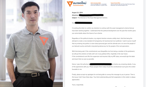 นายธนาธร ยังแปลเนื้อหาในจดหมายฉบับดังกล่าวเป็นภาษาไทย ระบุว่า 22 สิงหาคม 2019 ถึง: ฝ่ายบริหารของบริษัท... เรื่อง: ทิศทางของแผนการจัดการทรัพย์สิน เรียน: คุณ...