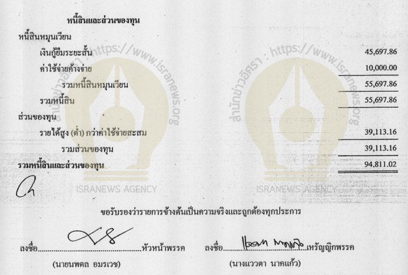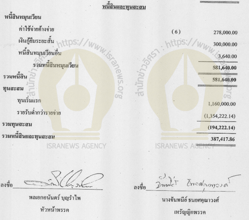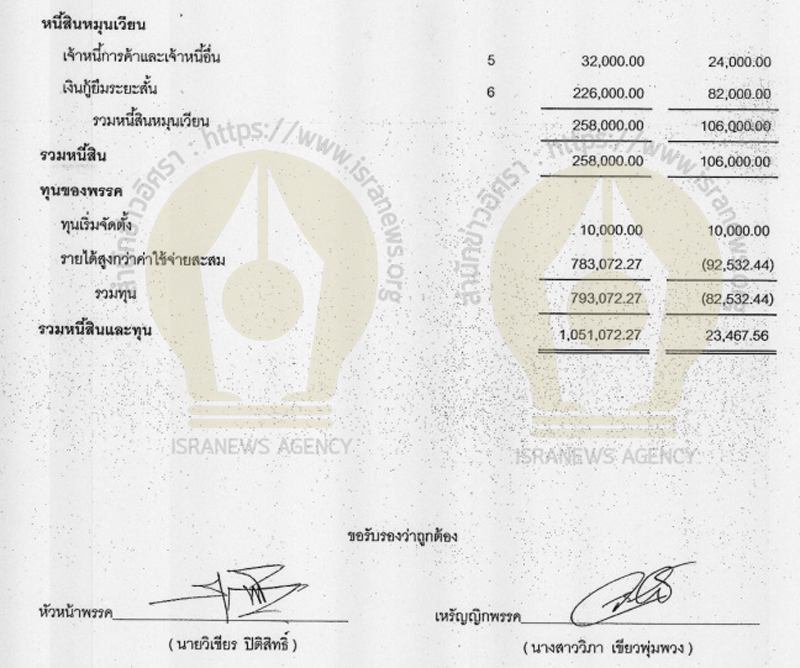 1.พรรคพลังศรัทธา แจ้งในหมายเหตุงบการเงินมีหนี้สินหมุนเวียน เป็นเงินกู้ยืมระยะสั้น 300,000 บาท