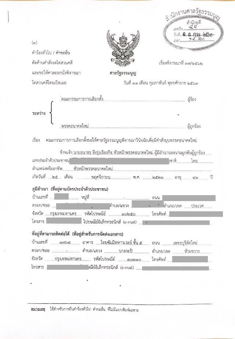 อนค.เผยศาล รธน.ไม่รับคำร้องไต่สวนพยานคดีล้มล้างการปกครอง-รอนัดฟังคำวินิจฉัย