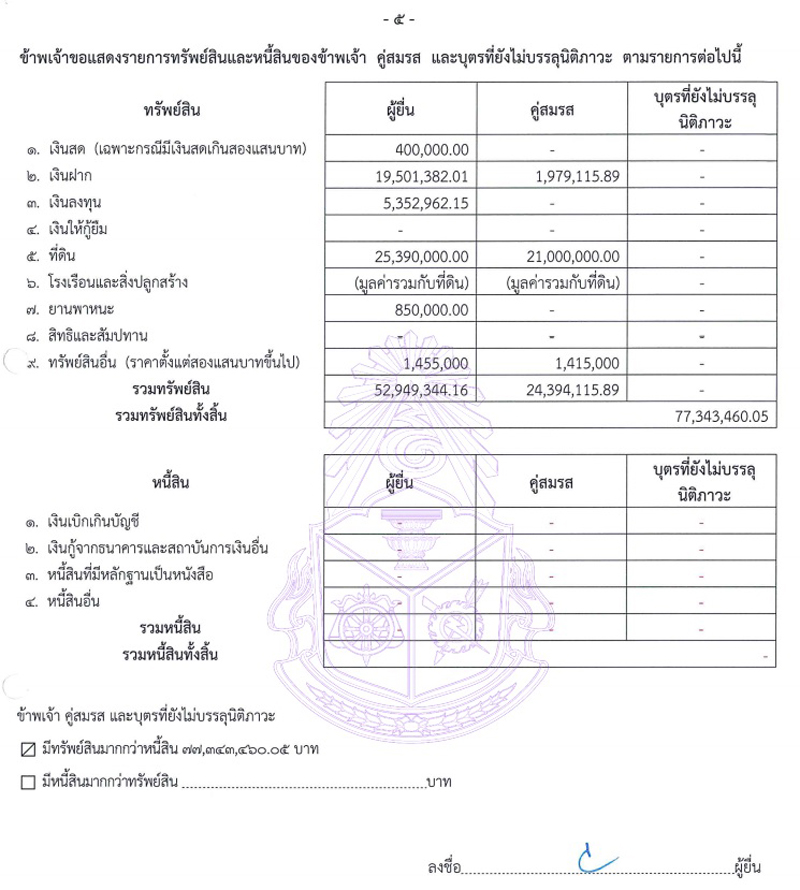 รวมทั้งคู่มีทรัพย์สินทั้งสิ้น 77,343,460 บาท ไม่มีหนี้สิน