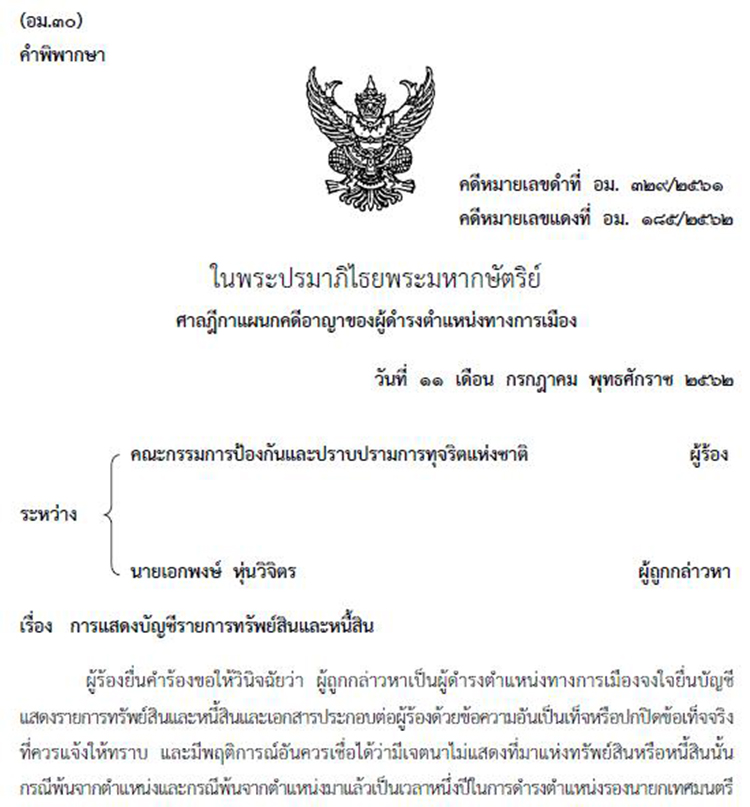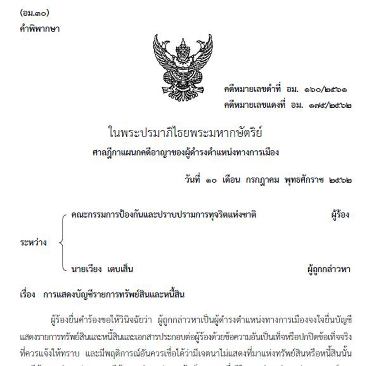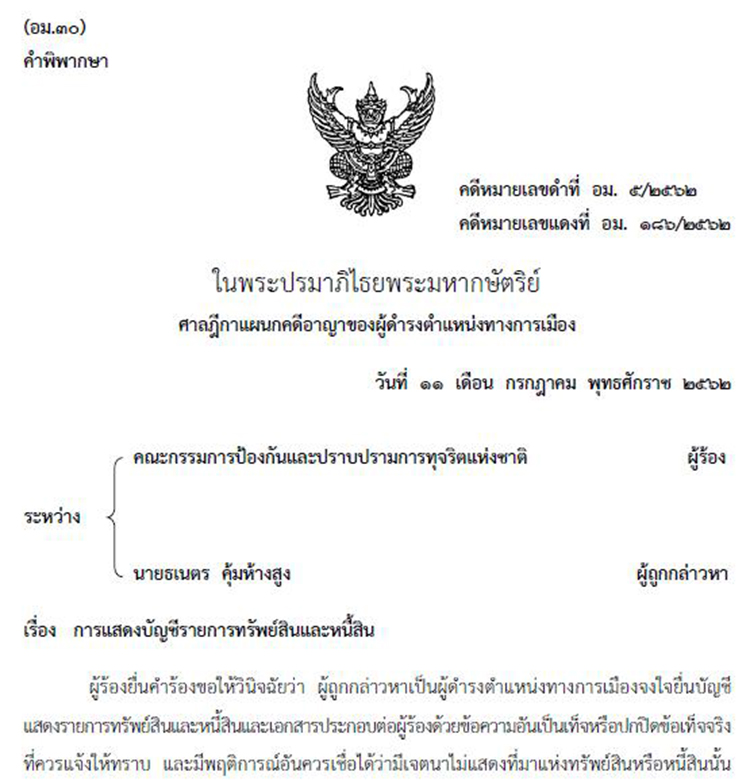 INFO: 117 นักการเมือง ศาลฎีกาฯ ฟัน จงใจยื่น‘บัญชีฯเท็จ-ไม่ยื่น’ป.ป.ช. ปี 2562