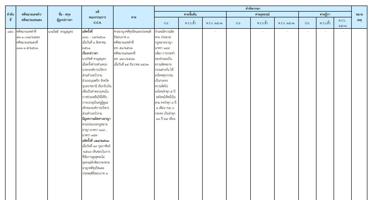 ป.ป.ช. เผยแพร่ผลคดีชี้มูลความผิด 'กิตติ หาญสมุทร' อดีตนายกอบต.บัวงาม อำเภอบุณฑริก จังหวัดอุบลราชธานี เรียกรับเงินตอบแทนช่วยเหลือบรรจุครูผู้ดูแลเด็ก ล่าสุดศาลอาญาคดีทุจริตประพฤติมิชอบภาค 3 พิพากษาลงโทษจำคุก 5 ปี ลดโทษให้หนึ่งในสาม คงจำคุก 3 ปี 4 เดือน รวม 6 กระทง เป็น 18 ปี 24 เดือน