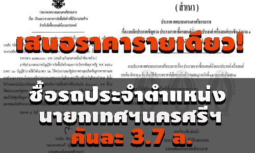 เบื้องหลังจัดซื้อรถประจำตำแหน่งนายกเทศมนตรีนครนครศรีฯ คันละ 3,798,000 บาท มีผู้ยื่นรายเดียว ก่อนหน้าประกาศมาครั้งหนึ่ง ต้องยกเลิก อ้างไม่มีผู้ประกอบการยื่น ถัดมา 9 เม.ย.รอบใหม่ 24 เม.ย.ได้ผู้ชนะ ทำสัญญา 5 พ.ค. หลัง ชมรมstrong ต้านทุจริตฯ ปูดข้อมูล