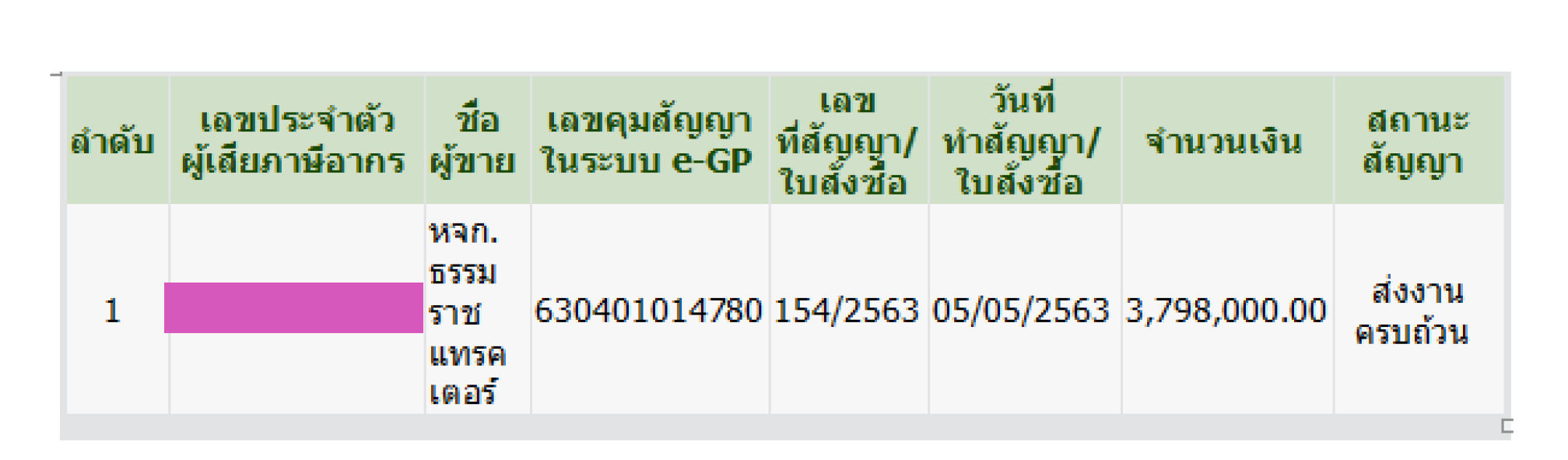 และประกาศผู้ชนะการเสนอราคา เมื่อวันที่ 24 เม.ย.2563 และทำสัญญาเมื่อวันที่ 5 พ.ค.2563 ในราคา 3,798,000 บาท (ดูเอกสาร)