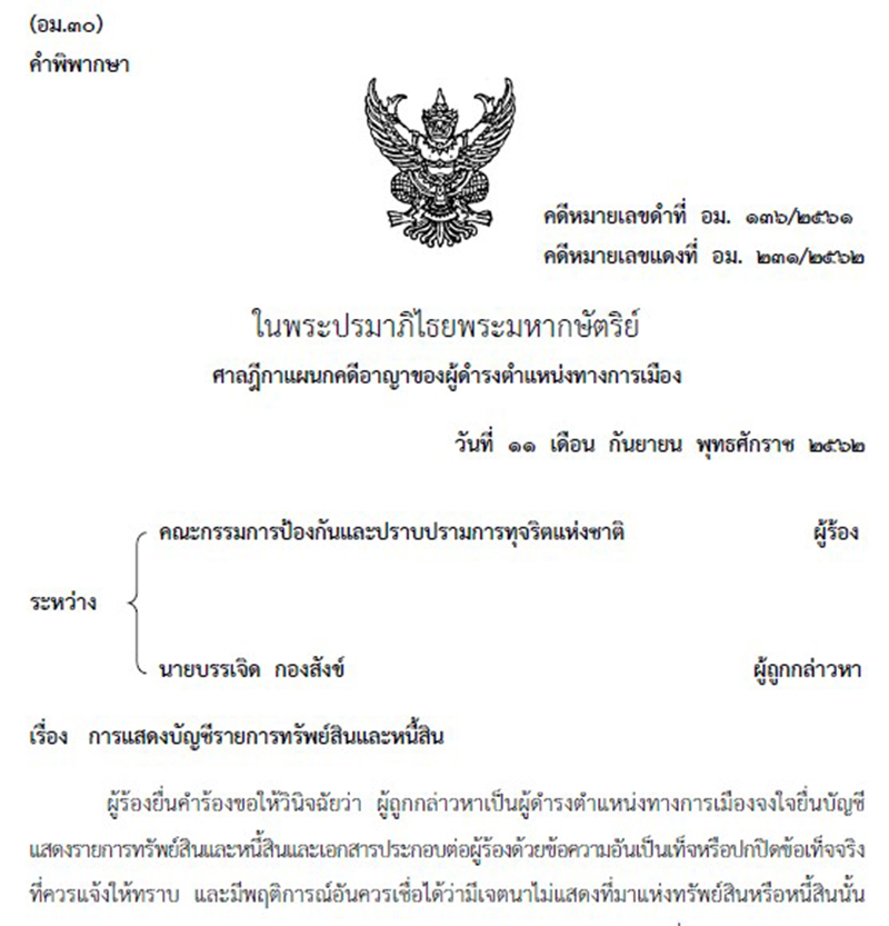 INFO: 117 นักการเมือง ศาลฎีกาฯ ฟัน จงใจยื่น‘บัญชีฯเท็จ-ไม่ยื่น’ป.ป.ช. ปี 2562