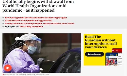 ส่วนสถานการณ์อื่นๆในสหรัฐฯ มีรายงานว่า สหรัฐฯได้เริ่มกระบวนการถอนตัวจากองค์การอนามัยโลกหรือ WHO อย่างเป็นทางการแล้ว