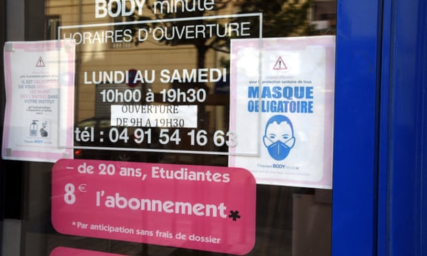 ป้ายบังคับให้ใส่หน้ากากที่ฝรั่งเศส (อ้างอิงรูปภาพจากสำนักข่าวการ์เดี้ยน)